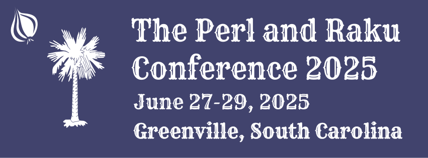 The conference organizing team is excited to present details of the 2025 Perl and Raku Conference, to be held June 27-29 in Greenville, SC. Registration for the conference will open soon, but you can start planning now to attend. We'd love to see you in the Palmetto State next summer!